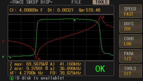 ZX70A/ZX80A series can measure and evaluate the parameters and performances of piezoelectric ceramic plate, piezoelectric transducer, buzzer, which is judged by impedance - phase - frequency curves and admittance circles.